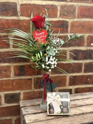 A Single Red Rose with Chocolates